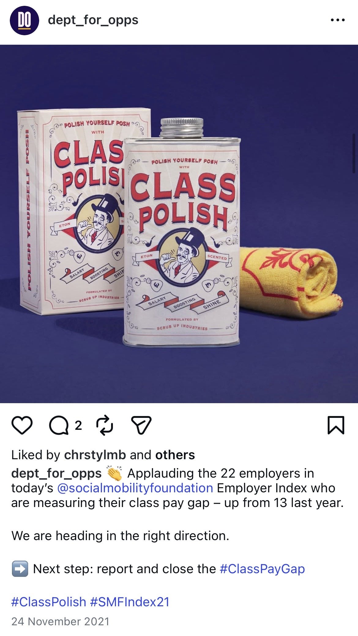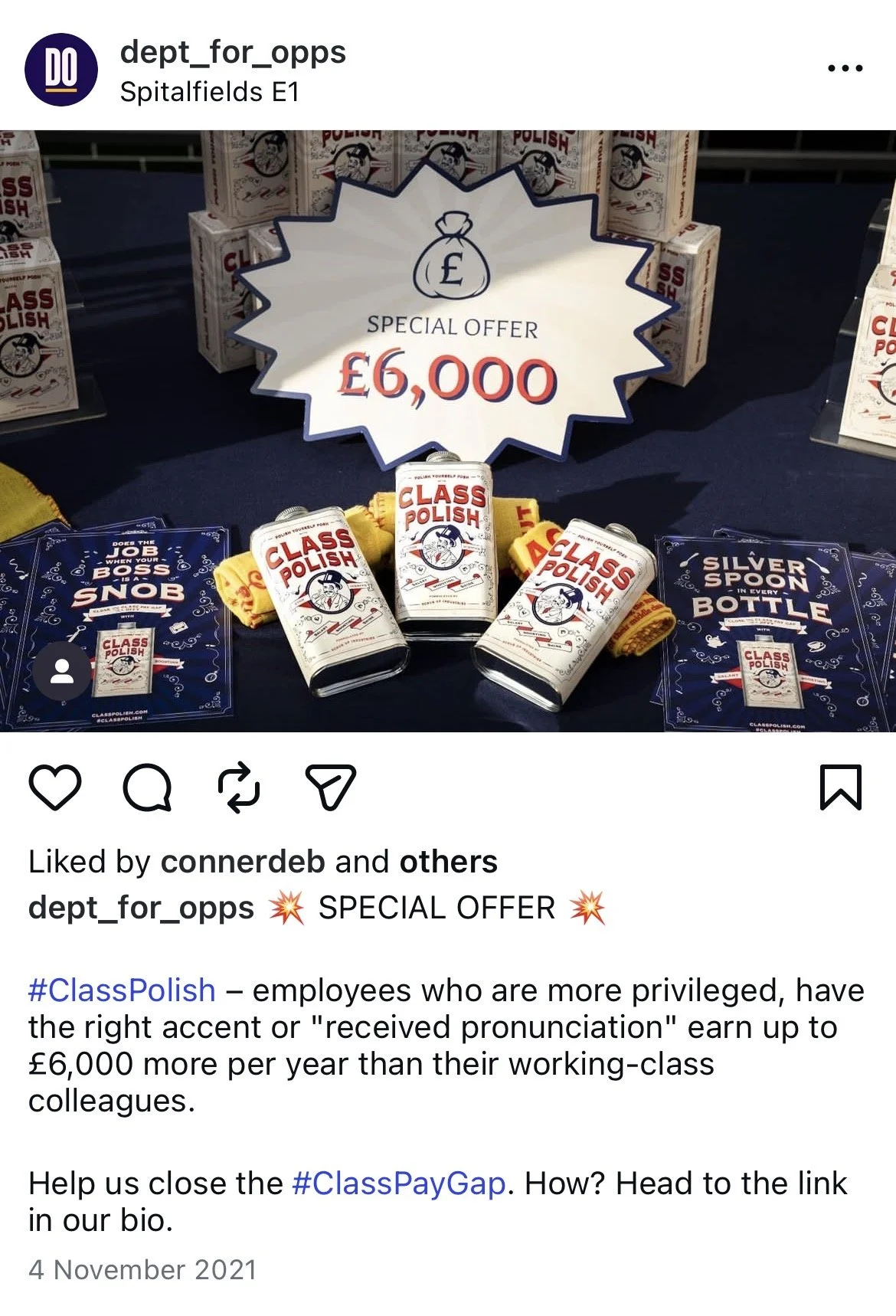 We needed to confront classist employers and the outdated statements they perpetuate. So we got Fern Brady to pose as a toff flogging an Eton-scented polish that’ll improve an employees chances in the workplace.